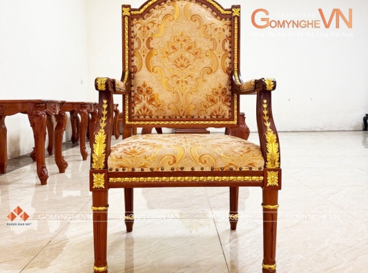 Toàn bộ khung ghế được làm từ gỗ gõ đỏ tự nhiên, một trong những dòng gỗ có độ cứng cao và ổn định tốt trong nội thất.
