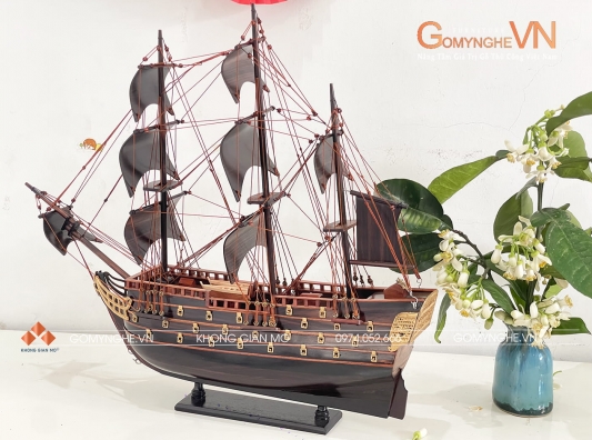 Mô hình thuyền gỗ mun – kích thước 40 × 45 × 10 cm