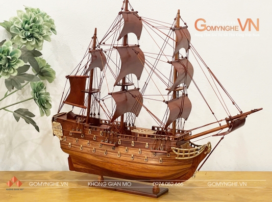 Thân thuyền, boong thuyền, cột buồm, dây neo, buồm gỗ,… đều được làm và căn chỉnh bằng tay. Mỗi đường mài – khớp nối – góc uốn đều được xử lý tỉ mỉ để mang lại sự hài hòa và độ bền cao trong quá trình sử dụng.