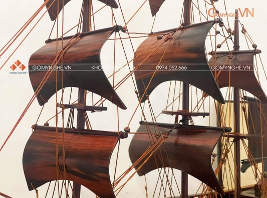 Phần buồm gỗ căng tròn no gió đầy kiểu hãnh là biểu tượng cho sự hanh thông và thể hiện yếu tố thiên thời địa lợi