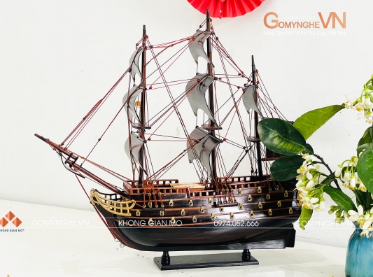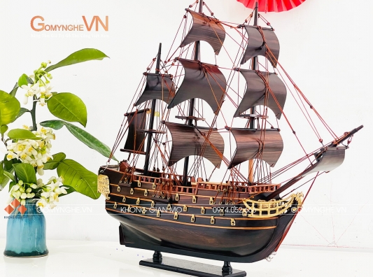 Mô hình thuyền gỗ mun – kích thước 40 × 45 × 10 cm