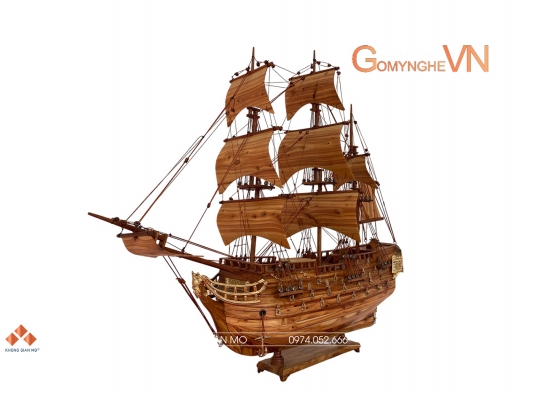 Cột buồm được tiện thẳng, gọn và đều. Phần buồm được tạo hình căng, thể hiện dáng thuyền đang no gió, mang ý nghĩa khởi sắc và hanh thông. Các chi tiết nhỏ đều được lắp ráp thủ công để đảm bảo tổng thể hài hòa.